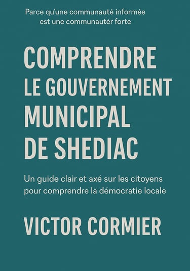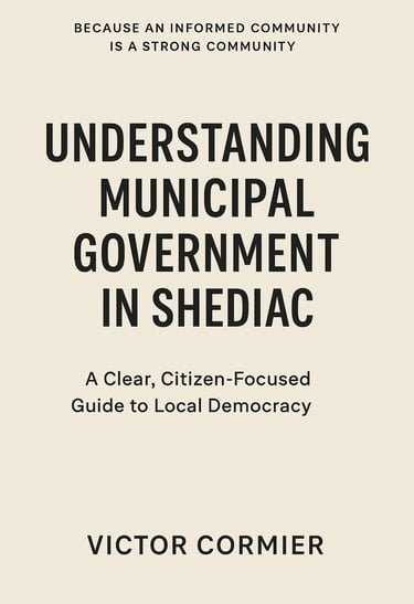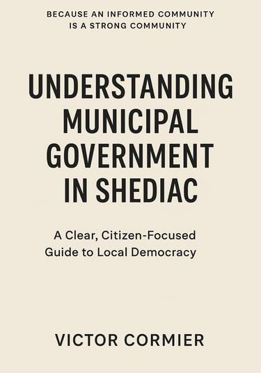 This free book was created to help Shediac residents clearly understand how our municipal government works and how decisions are made in our community. Written in plain language and focused on citizens, it explains the roles of council, the mayor, municipal services, budgeting, and how residents can participate with confidence.